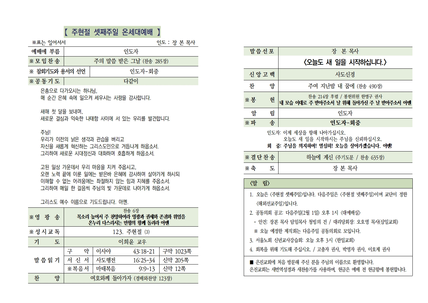 20260125 주현절 셋째주일