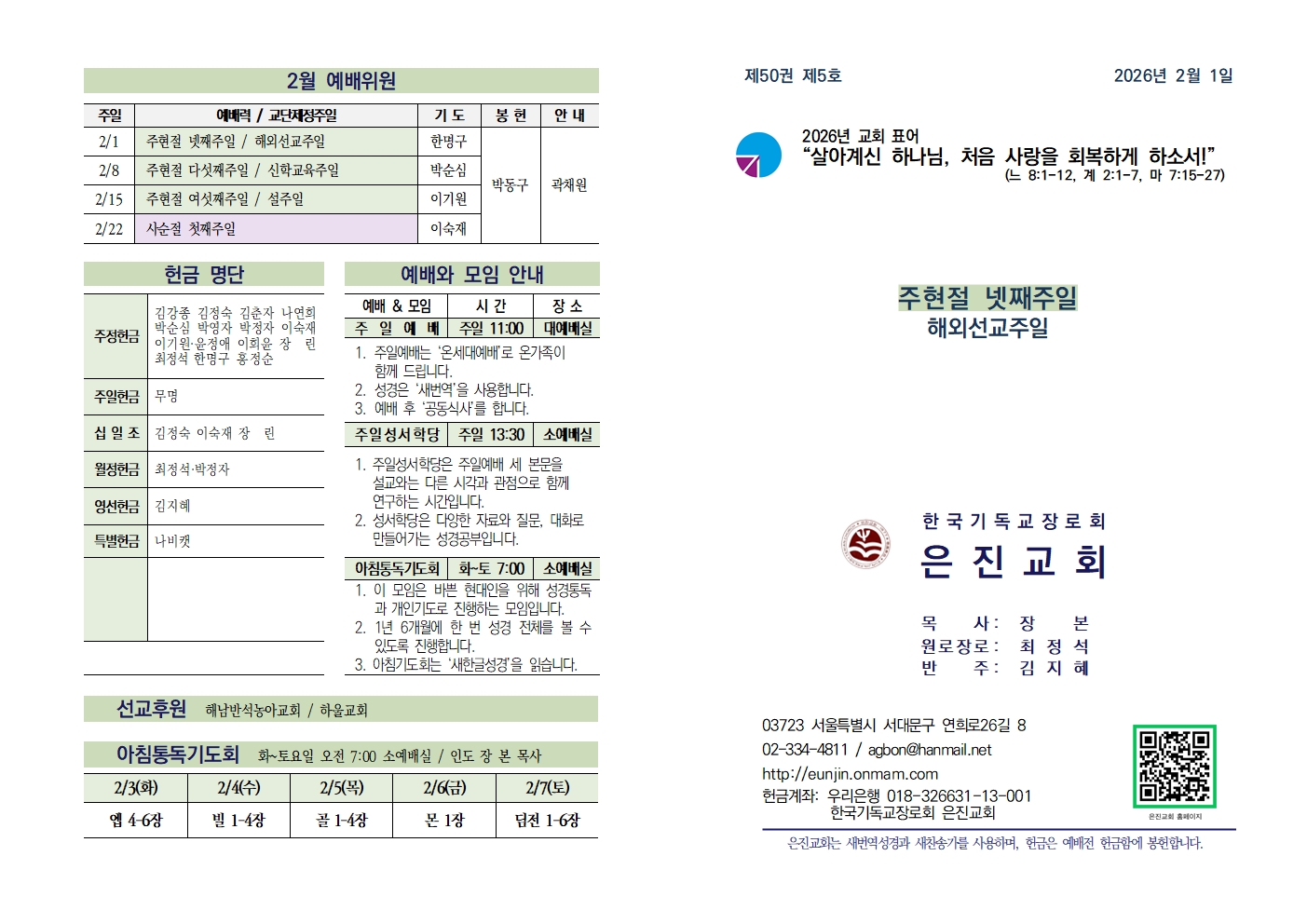 20260201 주현절 넷째주일 / 해외선교주일