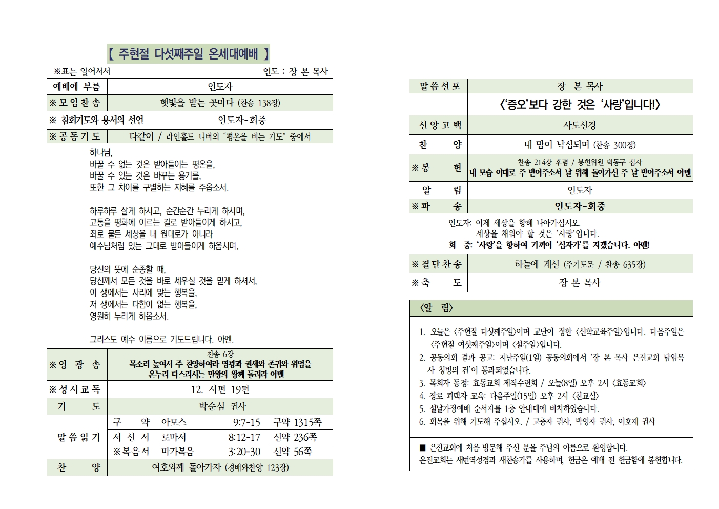 20260215 주현절 여섯째주일 / 설주일