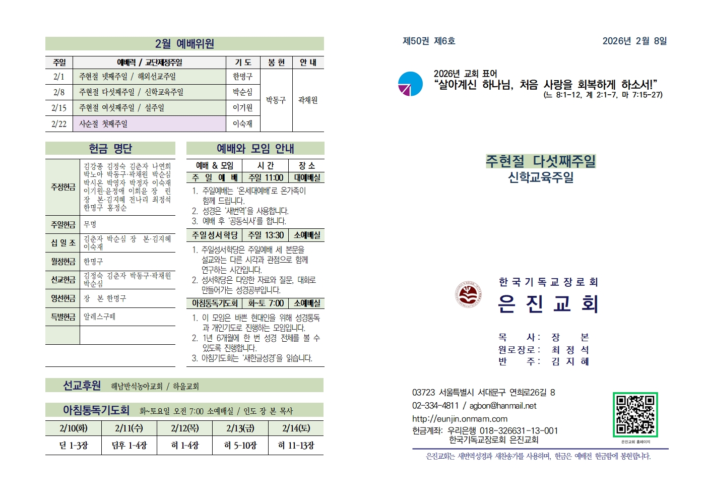 20260208 주현절 다섯째주일 / 신학교육주일