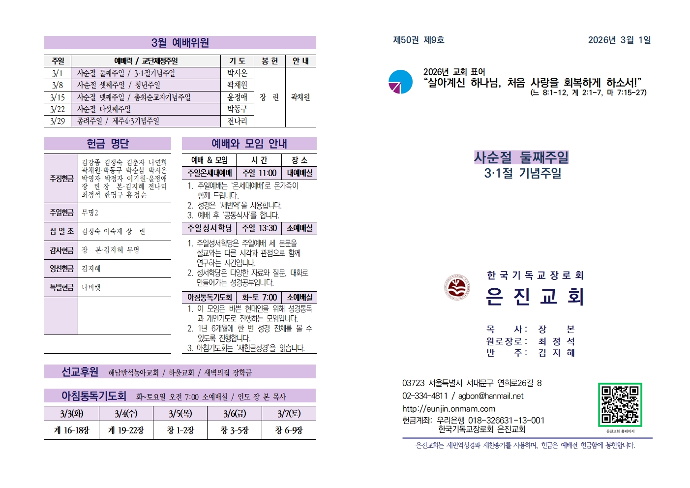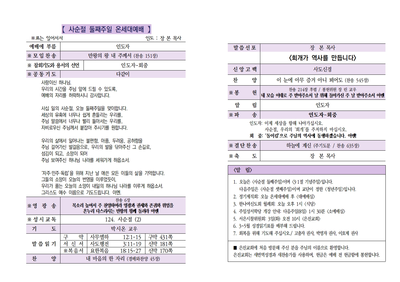 20260301 사순절 둘째주일 / 3.1절기념주일